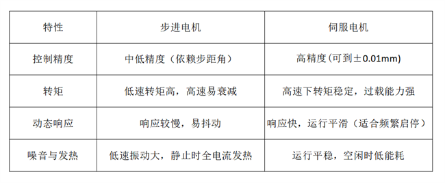 伺服電機(jī):通過閉環(huán)控制幾乎消除累積誤差,定位精度更高(通?!?.01mm級(jí)別),尤其適合高精度場景。