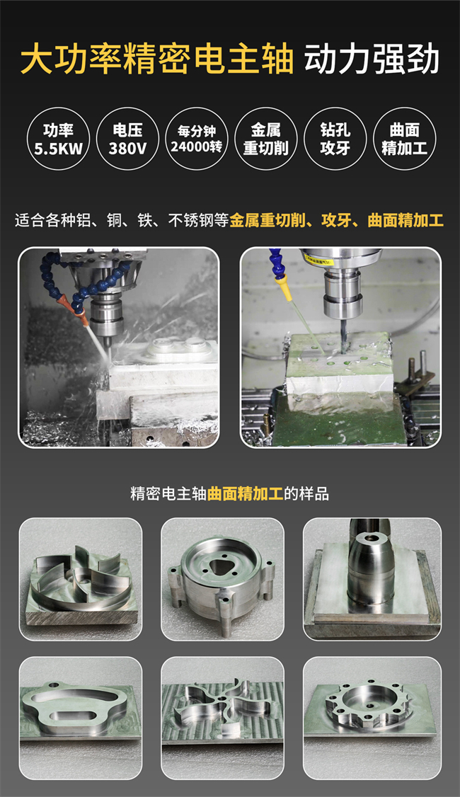 應(yīng)用范圍:高速雕刻、銑型、鉆孔、切削;高光倒角、鑄件清理、治具加工、曲面精加工。適用于鋁合金、黃銅、紫銅、鋼、鐵、鋅合金、鎂合金、金、銀、鉬、亞克力、塑料、陶瓷、碳纖維、石墨板、電木、樹脂、環(huán)氧板